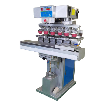 Gloednieuwe Kosteneffectieve Kleurproductie Printer 6 Kleuren Automatische Cap Pad Printmachine Met Transportband